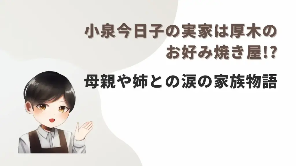 小泉今日子の実家は厚木のお好み焼き屋!? 歌手・俳優として長年にわたり第一線で活躍してきた小泉今日子さん。 実はそのルーツには、神奈川県厚木市にある“実家のお好み焼き屋”と、個性豊かな家族との深い絆がありました。 本記事では、母と姉が営んでいた... -